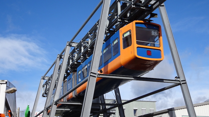 当線が採用しているのは「ランゲン式」と呼ばれる鉄輪式の懸垂モノレールシステムで、1本のレールの上に両フランジ車輪を付けた台車を載せ、レールの下にアームで車体を吊るしてバランスを取る。ランゲン式は左右非対称な形状のため、終端をループ線として車両は常に1方向のみに動いている。なお、日本でも東京都がランゲン式をゴムタイヤ化したシステムを導入しようとしていたことがあり、2019年以降休止中の上野懸垂線はその実験線という位置づけだった。