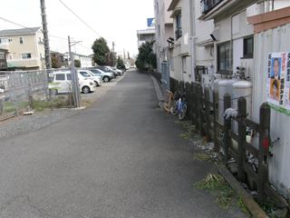 ここからしばらく廃線跡の明確な痕跡は消えてしまいます。青梅連絡線に学校前踏切のところまで並行していた道路が、当時の五日市鉄道のルートに似ているので、おそらくこの道路が廃線跡だったか、この道路に沿って廃線跡があったものと思われます。(道路と線路のルートの重複は、探訪後判明しました)