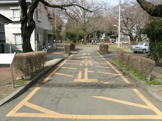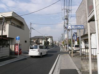 [郷地駅 ごうちえき Gochi station] [武蔵福島駅 むさしふくしまえき Musashi-Fukushima station] [南中神駅 みなみなかがみえき Minami-Nkagami station] 郷地駅までについてはひとつ前のリポートをご覧ください。郷地駅から武蔵福島駅の跡付近までは「五鉄通り」と名付けられた生活道路となります。しかし、武蔵福島駅の付近から先しばらくは、住宅地となります。そして、路線の跡らしきものが見えるのは南中神駅の跡で(後で地図をよく見ると、武蔵福島〜南中神寛の道路の一部は廃線跡の様です)、建物の裏側に南中神駅跡の緑地が見えます。 |
