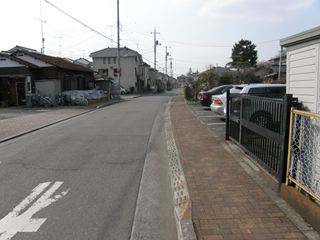 この付近から先はしばらく痕跡がないと考えていたので、隣の南中神駅付近まで迂回しました。しかし、帰ってから地図で見ると、建物の並びや道路、歩道の形からこの区間も線路跡をたどれそうだとわかりました。googleストリートビューで見てもあまり「それっぽさ」はないですが、もしこの付近へまた行くことがあれば取材したいと思います。