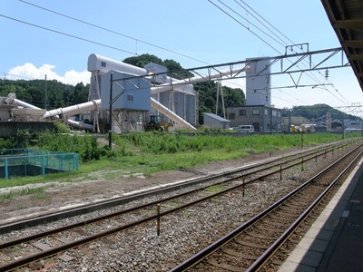 駅の裏手は山が迫っていて、ほとんどセメント工場しかありません。