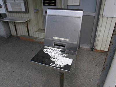 無人駅なので集札箱があるのですが、その集札箱は台の様になっていて、その上に定期を乗せて監視カメラに見せるというシステムです.