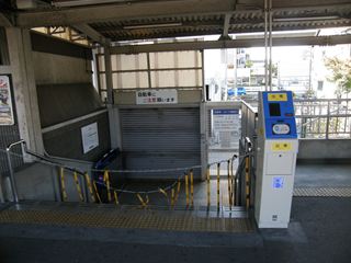 北口(臨時) 学生の街ということで上下ホームにそれぞれ臨時の改札が設けられています。普通の改札は一階地下に降りてからまた地上に上がる構造なので、車椅子の人の乗降口という意味合いもあるようです。