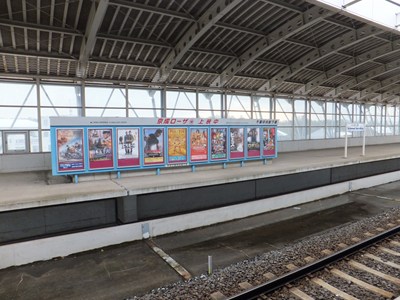 未使用のホームは京成系列の映画館「京成ローザ」の看板として使用されています。
