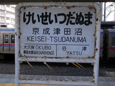 谷津駅(京成上野方面) ←京成本線→ 京成大久保駅(京成成田方面)