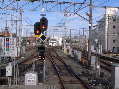駅東側の踏切は開かずの踏切となっています。