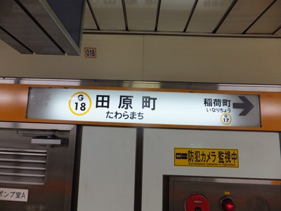駅名標。どうでもよいことですが、私はずっと隣の稲荷町も「いなりまち」と読むのだと思い込んでいました。