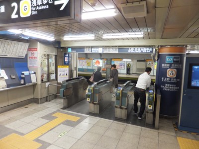 田原町駅は東京メトロ銀座線の駅です。浅草のはずれのようなところにあり、周辺には仏壇・仏具店が多いのが特徴です。浅草通りの地下に駅はあり、相対式2面2線の線路配置で、上下ホーム間は改札を出ないと行き来できません。