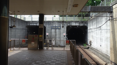 駅の南側から地下区間となる。トンネルの坑門には「旭ヶ丘隧道」の扁額が掲げられている。