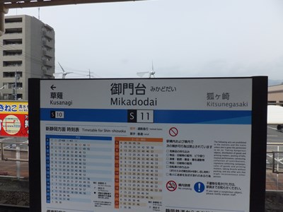 御門台駅は静鉄静岡清水線の駅である。当初は近くにある学校名をとって有度学校前と名乗っていたが、のちに宅地開発にあたって御門台へと改称され た。2世紀の頃景行天皇が日本武尊の征した国々を行幸した歴史があるということでこの駅名とされた。