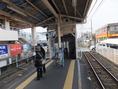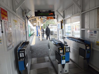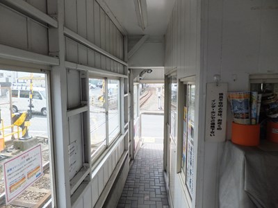 駅舎はホームと同じ幅しかないためとても狭く、駅事務室は改札の隣ではなく改札の向かいに通路を半分以上塞ぐように設置されている。