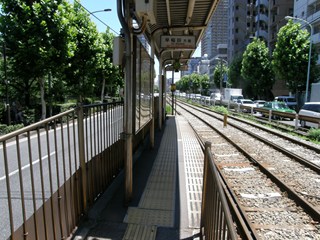 [ 面影橋駅 おもかげばしえき ] 東京都新宿区 面影橋駅は都電荒川線の中間駅では珍しい「道路の真ん中」に位置している駅で、駅名は駅のすぐ脇の神田川に架かる橋の名前からきています。 駅は新目白通りの上下車線に挟まれていて、そのため上下ともにホームの幅はかなり狭くなっています。昔は高田馬場へ向かう線路が分岐する駅でしたが、現在では元に戻り、ただの中間駅になっています。また、新目白通りの拡張前までは当駅や早稲田駅は新設軌道上にあったそうです。 |