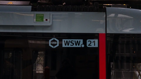 先頭付近には運営会社WSWと、加盟するVRR(Verkehrsverbund Rhein-Ruhr=ライン・ルール運輸連合)のロゴマークが掲出されている。