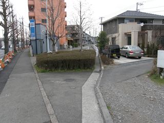 [武蔵田中駅 たちかわえき Tachikawa station] [南拝島駅 むさしうえのはらえき Musashi-Uenohara station] [拝島駅 ごうちえき Gochi station] 武蔵田中〜南拝島間の線路跡は新奥多摩街道という大きな道路に変わっていて、当時をしのぶことはできません。南拝島駅は新奥多摩街道沿いにある農協の脇の空き地が跡地ということで、そこから線路跡は再び小さな道になります。そして、この道路をひたすら行くと廃線跡は駐輪場に変わり、その駐輪場を進むと廃線跡は拝島駅の構内へと消えていきます。 |
