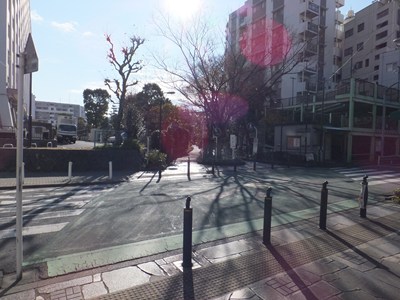 斜め方向に明治通りと合流します。
