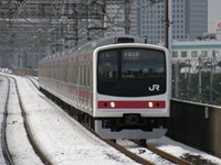 | a 205系はJR京葉線で使われる電車で、国鉄〜JR東日本・JR西日本にかけて首都圏や京阪神地区に集中投入された通勤電車です。京葉線には東京駅延伸開業の1990年から投入されました。 京葉線用の全17編成のうち5編成は山手線などからの転属車で、残り12編成は京葉線全通に伴い導入された編成でほかの205系とは異なる個性的な顔立ちで、異色を放っています。 帯色はワインレッドで、車内の座席モケットなども京葉線独自のものに交換されています。 |