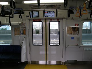 ドアは内側に化粧版があり、窓が四角く広いのが特徴です。ドア上には近頃では標準装備となったような感もあるLCD(液晶ディスプレイ)が設置されています。