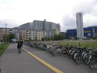 南口は天井が高い開放的なデザインで、駅前には団地やIKEAがあります。IKEAと奥の高層マンションがあるところは昔、ザウスという屋内型スキー場があったところです。 また、ロータリーは駅から離れたところにポツンとあります。南口駅前はなぜか建物が駅を避けるように配置され、駅前がのっぱらになっているのが特徴です。