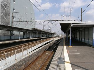相対式のホームは扇形に広がっていく構造で、武蔵野操車場があったころにはその開いた間のスペースに線路があったそうです。