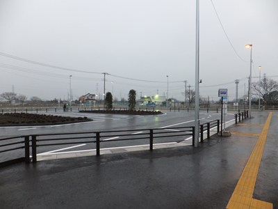 東口も西口とほぼ同じデザインの駅舎ですが、出口と改札の間で一般道を跨ぐという特徴があります。