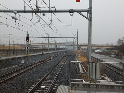 府中本町方の下り線側には、保線用の側線があります。