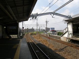 府中本町方 吉川駅ほどではないですが、上下線間が徐々に開いています。