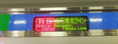 側面の行先表示機はフルカラーではなく3色LEDで、行先表示は仙台(または石巻)と仙石東北ラインが交互に表示される。