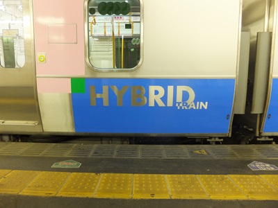 る。連結面付近には「HYBRID TRAIN」のロゴマークが入れられている。