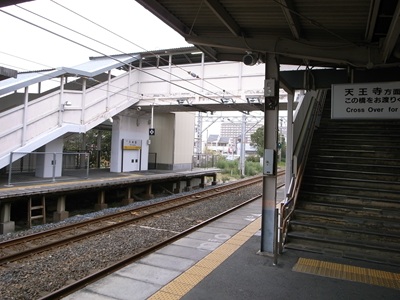 左:天王寺方より 右:天王寺方 相対式2面2線の線路配置で、上下ホーム間には跨線橋があります。