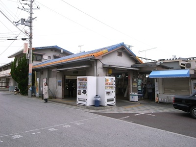 駅舎は瓦葺きで、変わった屋根の色が特徴的です。