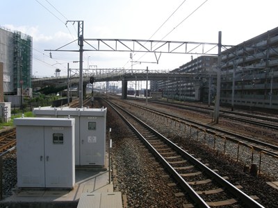 ホームの西側まで金沢貨物ターミナル駅の線路が伸びています。