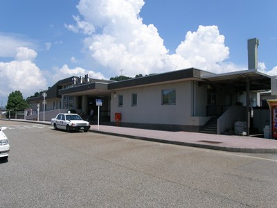 駅舎はコンクリート造りで、少し変わったデザインです。出入り口付近の屋根の形は能登半島を模しているそうです。