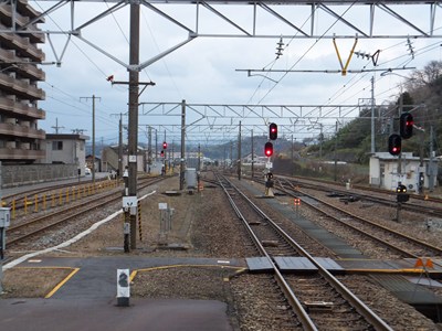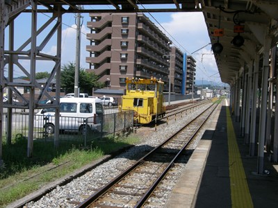 保線用の側線もあります。後ろに写っているのは駅前の分譲マンションです。