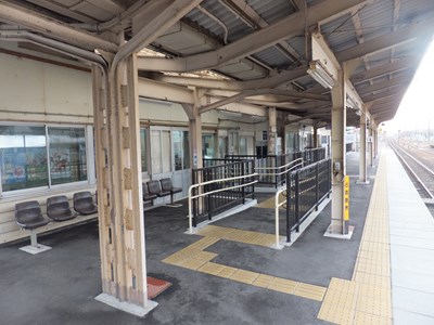 駅舎の周囲にはホームを嵩上げした形跡があります。実際、ホームは駅舎と跨線橋の付近のみ列車が止まる分だけ綺麗になっています。
