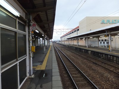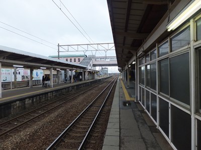 ホーム 左:金沢方面を望む 右:富山方面を望む