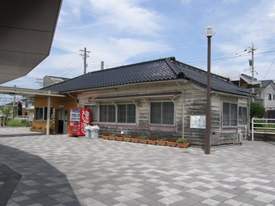 駅舎は木造でいい感じです。左半分だけ壁がリニューアルされています。