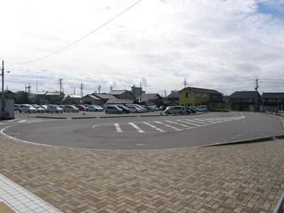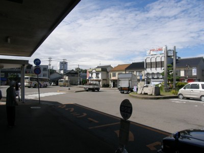 駅前はロータリーや駐車場。裏口なので普通の住宅地です。