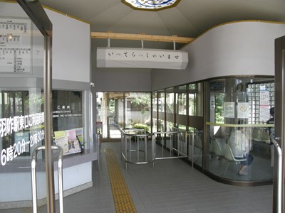 裏口的存在の東口駅舎です。黄色くて存在感があります。