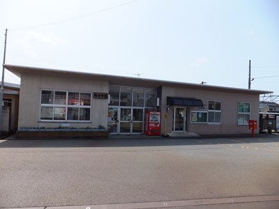 国鉄らしい直線的な駅舎で、駅の看板は木の板で作られています。