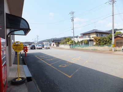 駅前はタクシー乗り場になっています。正面の不思議な建物はJAのものです。