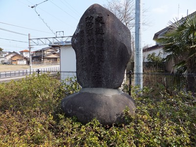 駅舎の脇にはこのような石碑があります。七尾鉄道の敷設に尽力した神野良、堀岡萬吉両氏をたたえるものです。