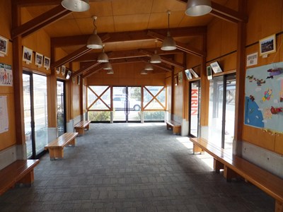 駅舎の中央部は吹きさらしになっていて、待合室のみが壁に囲まれた空間になっています。