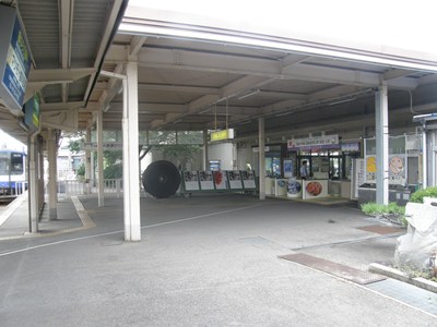 改札とホームは少し離れていて、その間のスペースには和倉温泉駅と同じように祭りの山車の車輪が置いてあります。