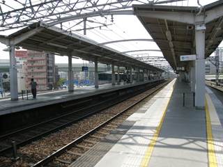 追い越し可能な2面4線の配線です。ホーム上屋は全面を覆っています。