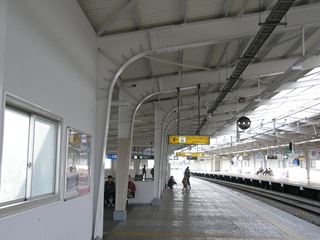 [西九条駅(阪神) にしくじょうえき Nishi-Kujo station(Hanshin line)] 大阪府大阪市此花区 西九条駅は阪神なんば線の駅で、JR大阪環状線、桜島線との乗換駅です。また、阪神西大阪線の千鳥橋〜当駅間が1964年に開業してから阪神なんば線として2009年に大阪難波に延伸するまでの間は終点駅でした。 大阪環状線をホームの途中で超える形の相対式ホーム2面2線で、ホームの環状線より西側や1番出口(西口)が西大阪線時代からある施設で、ホームの大阪環状線乗り越し部分から西側や2・3番出口(東口)は阪神なんば線開業時に作られた施設です。当駅から九条駅までの地上区間はほとんどが防音用のシェルターに覆われています。 |