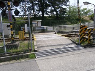 道路から直接ホームに踏切がつながっています。