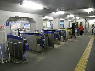 北口(臨時) 学生の街ということで上下ホームにそれぞれ臨時の改札が設けられています。普通の改札は一階地下に降りてからまた地上に上がる構造なので、車椅子の人の乗降口という意味合いもあるようです。