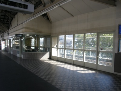 [ 香櫨園駅 こうろえんえき ] 兵庫県西宮市 この駅はその名前の通り「香櫨園遊園地」という遊園地の近くに設けられた駅です。開業から僅か7年後の1913(大正10)年にその遊園地自体は廃止されてしまいましたが、現在この駅名は高級住宅街への玄関口として知られています。 武庫川駅や芦屋駅ほどの規模ではないですがこの駅もホームの途中で川を渡る駅で、川を渡る地点には自由にホームから出入りできるバルコニーが設けられています。高架化の前にあった駅舎のデザインが秀逸で、バルコニーの部分はその旧駅舎を模したデザインです。 |
