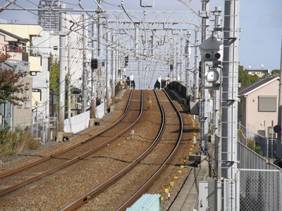 [ 西灘駅 にしなだえき ] 兵庫県神戸市灘区 西灘駅は、路面電車の阪神国道線があったころには本線と国道線の神戸側における乗換駅として機能していましたが、現在ではそのような面影は全ありません。 線路配置は相対式2面2線の標準的なもので、駅東側のガード下に阪神国道線は敷かれていました。 |