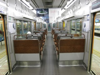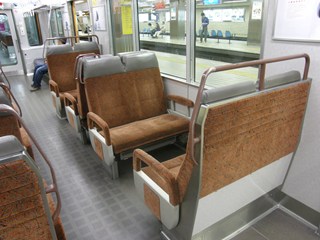 [ 9300系 ] 阪神電鉄(急行用) 9300系は阪神のそれまでの赤胴車(急行用車両)のイメージを一新した形式で、2001年から2002年にかけて投入されました。車齢の高い赤胴車を駆逐するために導入した形式で、6連×3本が直通特急などの優等列車に使用されています。 外観などは1996年に新型の青胴車として登場した5500系に似ていて、塗装も5500系に倣った「プレストオレンジ」と「シルキーベージュ」のパステルカラーの新しいものになっています。この塗装は8000系のリニューアルの際にも使用された組み合わせですが、オレンジ、白、黒(床下の機器の色)の組み合わせが阪神タイガースの敵、読売ジャイアンツを連想させるとして一部の阪神ファンの間で有名になりました。ちなみに、9000系の新塗装や1000系では、プレストオレンジよりも黄色っぽい「ビバーチェオレンジ」とブラックフェイスの組み合わせによって阪神タイガースをイメージさせるような塗装になっています(そういうことを狙っての色の変更かはわかりませんが)。 内装がこの形式の最も特徴的な部分で、阪神電車の車両としては37年ぶりにクロスシートを導入しました。これは乗り通すとかなりの距離になる梅田〜山陽姫路間での直通特急での使用を考えたもので、すでに直通特急として阪神線に直通してくる山陽電鉄の車両荷はクロスシートが導入されていました。 |